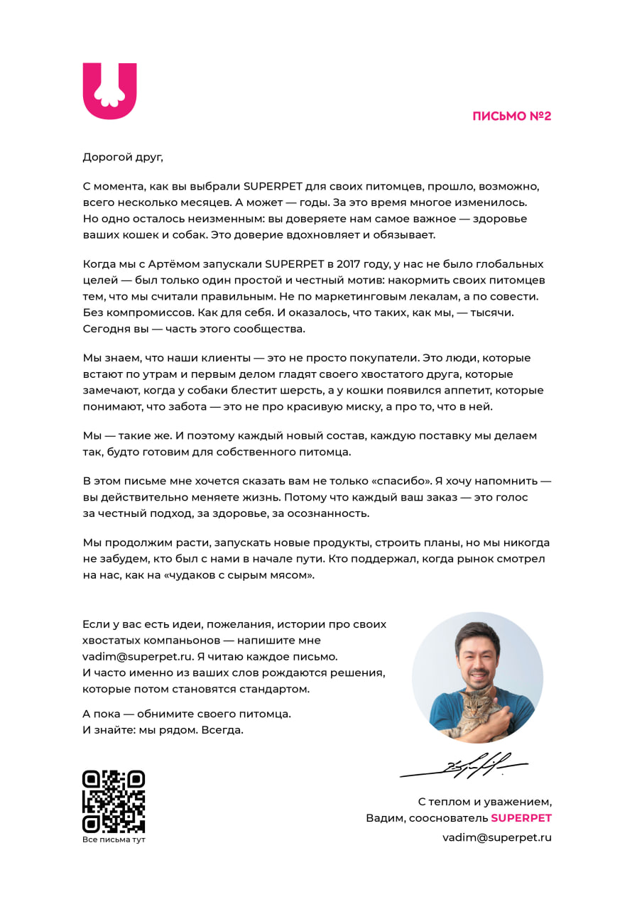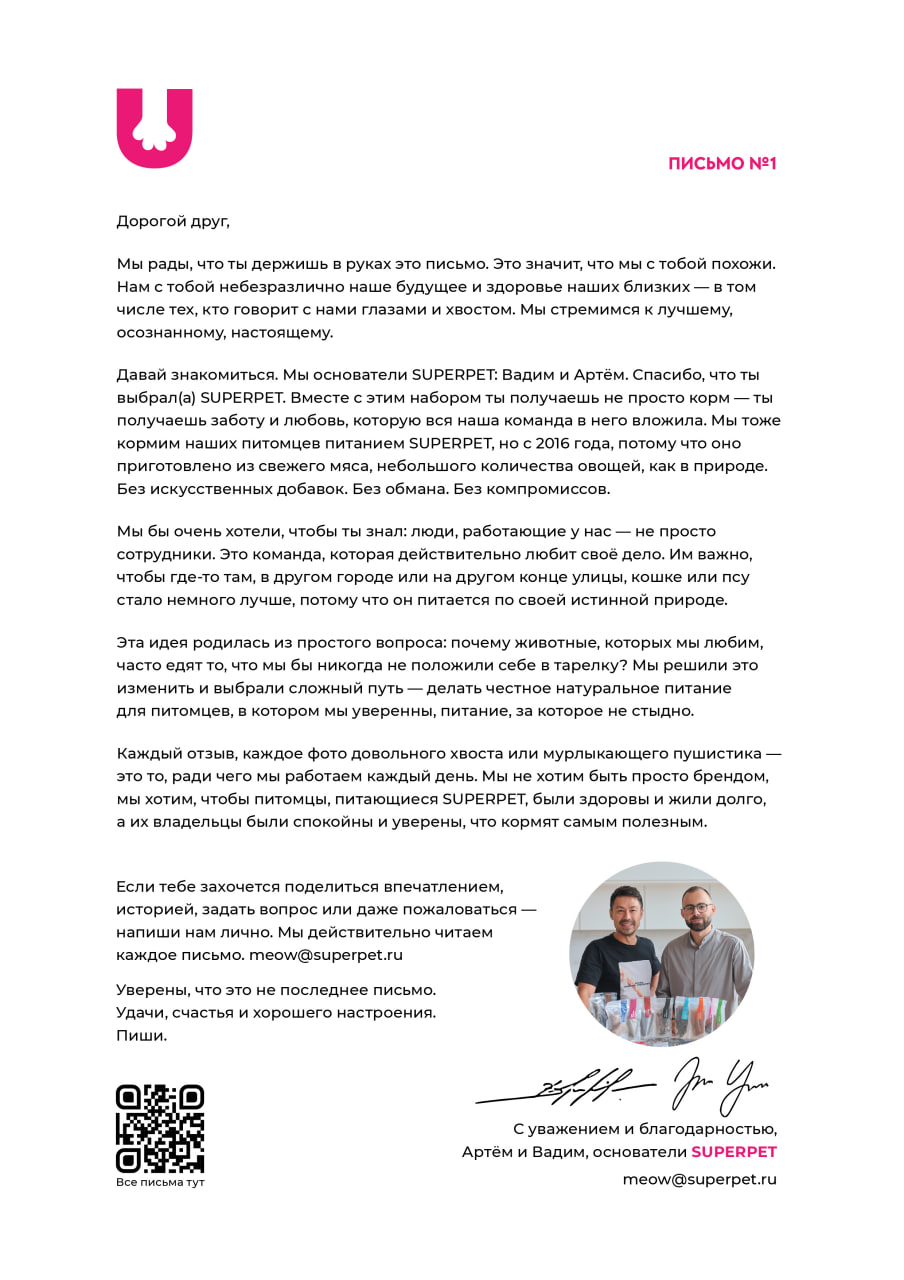 Письма основателей SUPERPET