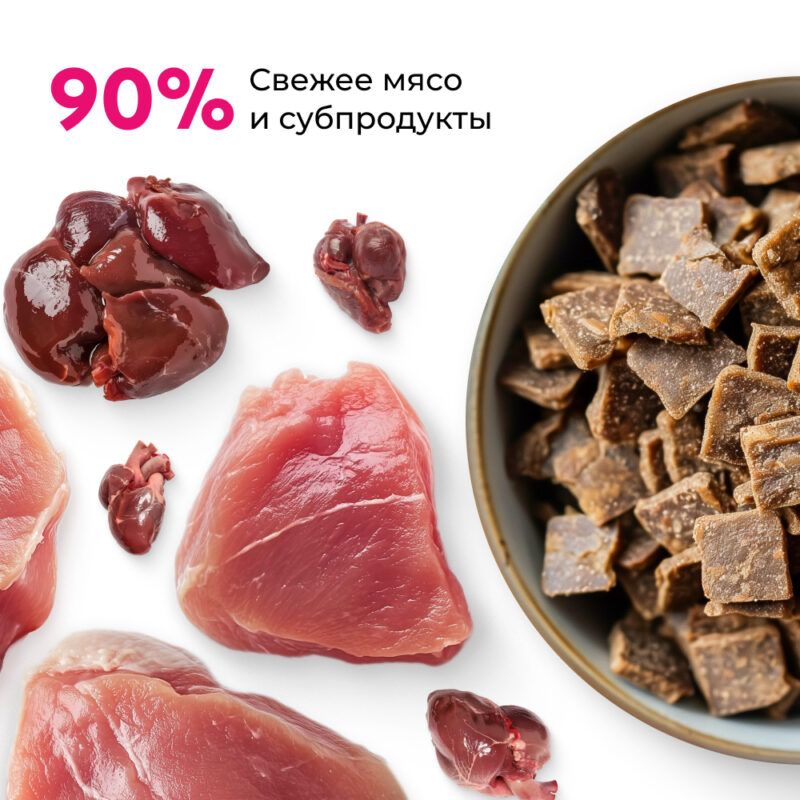 Остальные 10% это масло лосося, суперфуды и витамины. Почему доля свежего мяса так важна? Узнайте в блоге.